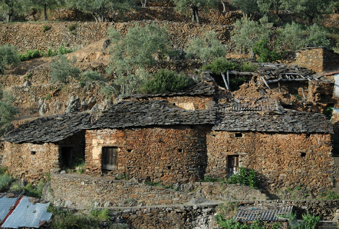 Resumen de la ruta: El recorrido comienza en el CTR Riomalo y, tras unos pocos kilómetros de asfalto, entra en pista para ascender la sierra sobre el río Ladrillar, que acompañará hasta casi el comienzo de su andadura, ya que el itinerario propuesto vuelve a entrar en asfalto en Riomalo de Arriba, sobre el cual, en la sierra, nace el río. Si las panorámicas se hacen inmensas sobre la Sierra de las Mestas, el valle y sus alquerías, el descenso, todo él por asfalto, cruzará las pequeñas poblaciones hurdanas que a lo largo del tiempo han visto en directo y sufrido el ímpetu del llamado Rio Malo (o Ladrillar), cuyas aguas han horadado con fuerza la verticalidad de su curso en época de lluvias, desde Riomalo de Arriba hasta Riomalo de Abajo.