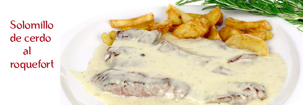 - Solomillo de cerdo con salsa roquefort/pimienta.