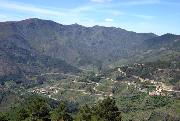 Route summary: Our route goes and returns by the slopes of the Sierra del Cordón, looking for its highlands, so it will pass a few meters away from the summits of Arropájaro and Cordón. When the route returns to go into the road, it will reach the north boundary of the region and it can take a look over the beautiful lands of Las Hurdes from the Mirador de las Carrascas and the Mirador de las Estrellas. They are magnificent places to observe the high valleys of the Hurdano and the Ladrillar and to know the almost impossible location of some villages, as Robledo, Carabusino, La Huetre or Casares de Las Hurdes.