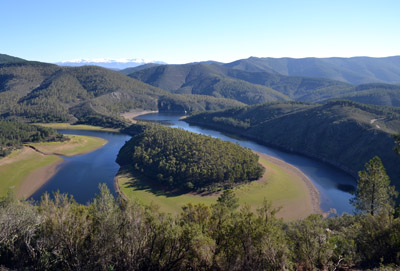 Route summary: The route begins and finish in Riomalo CTR, surrounding the Sierra del Cordón. Shortly after the beginning, it leaves asphalt and reaches the Mirador de la Antigua and the marvellous meander of Alagón river, Melero. Later the path turns again and again, following the contour lines, while it goes along with the river in its way towards the reservoir of Gabriel and Galán. The route changes the Alagón river by the course of the Hurdano towards Arrolobos, a small village that crosses another of our routes. Then the itinerary looks for the main road of Las Hurdes, in order to finish in Riomalo CTR, a few kilometers later.