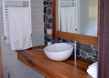 La edificación está hecha de materiales nobles, de piedra y madera por fuera, además de pizarra en el tejado. Los interiores, también de materiales nobles, disponen de amplias cristaleras que dan al valle del río y cuentan con sus respectivas terrazas. Su alta calidad les otorgan una categoría de 4 estrellas.