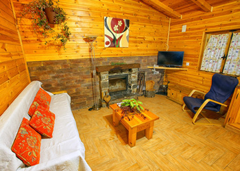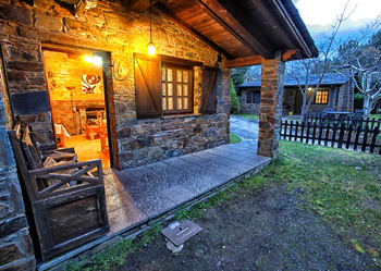 - Las cabañas están construidas exteriormente a base de pizarra, al estilo tradicional. En el interior, los suelos, paredes, carpintería y artesonado son de madera maciza. Cada una consta de: